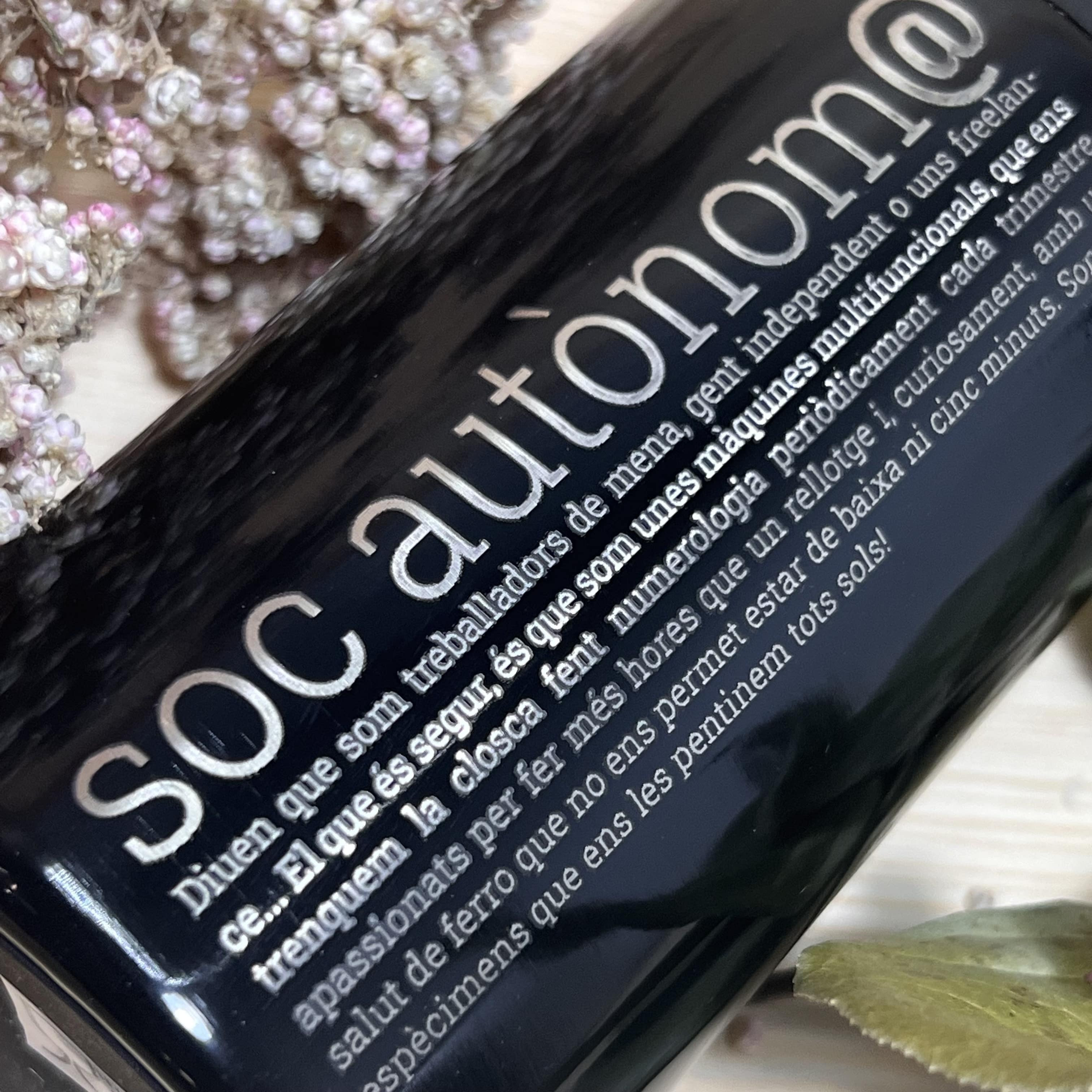 Llauna reutilitzable de acer inox estampada amb "Soc autònom@"