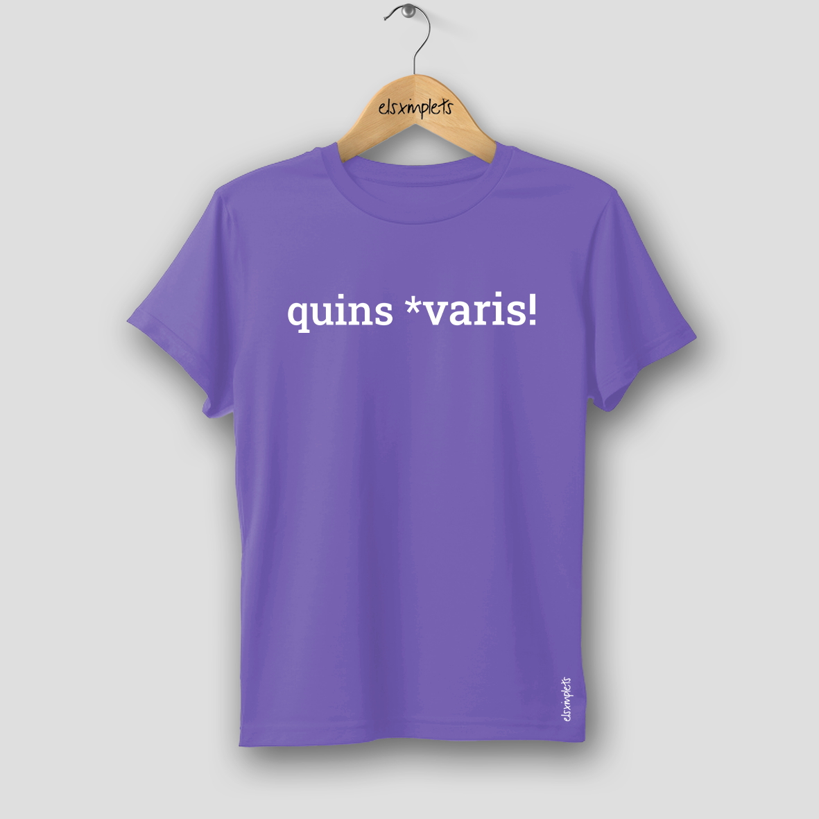 Samarreta de dona estampada amb la paraula 'Quins *varis!' i la descripció del seu significat amb les nostres paraules.