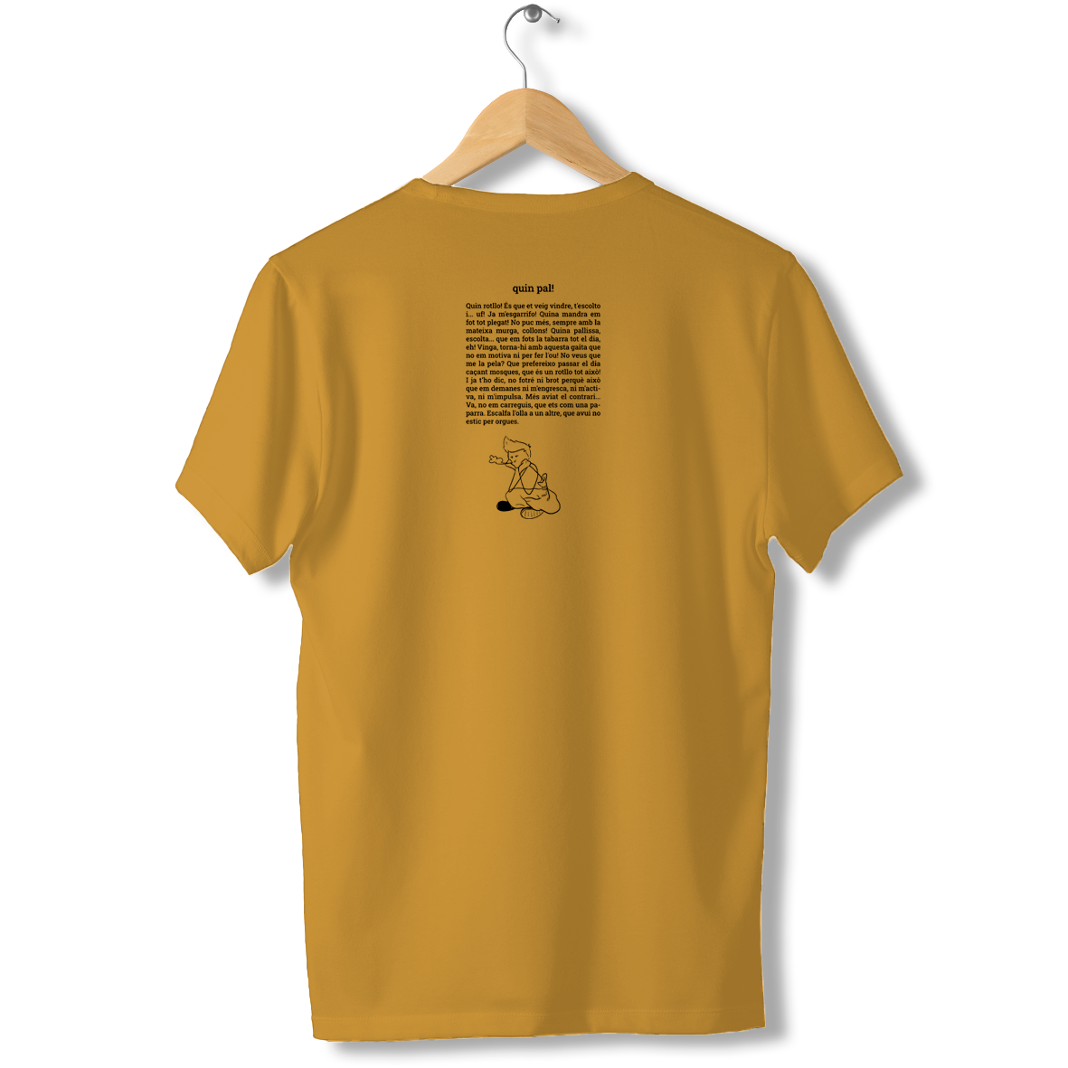 Samarreta de cotó orgànic, estampada amb la dita catalana quin pal!i la descripció del seu significat amb les nostres paraules, acompanyat de la il•lustració del ximplet per acabar-ho de deixar clar. Ideal per dir que ja no pots més.